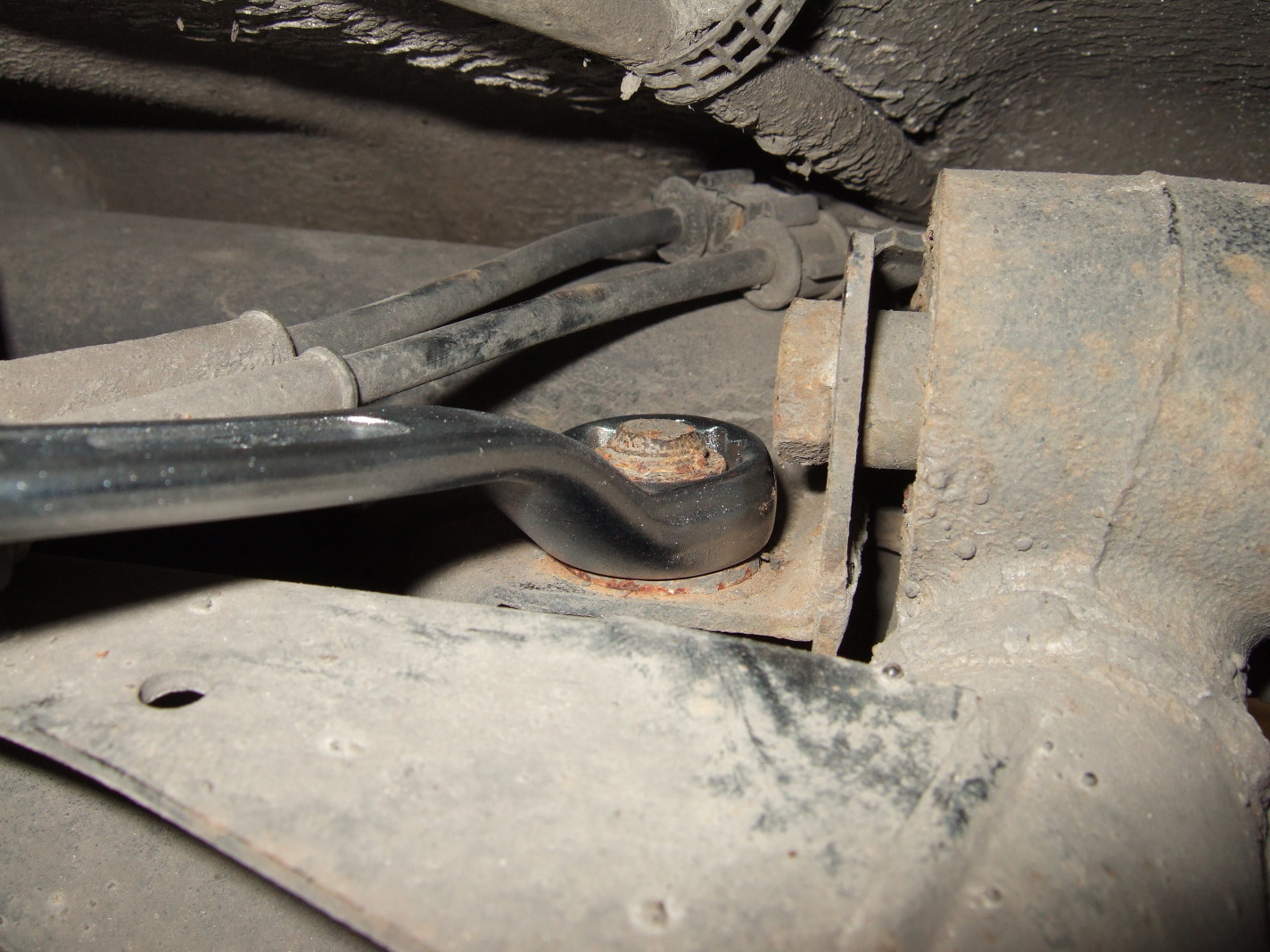 Picture 7 : Use a 22 mm box-end wrench to keep the nut still while you undo the bolt.